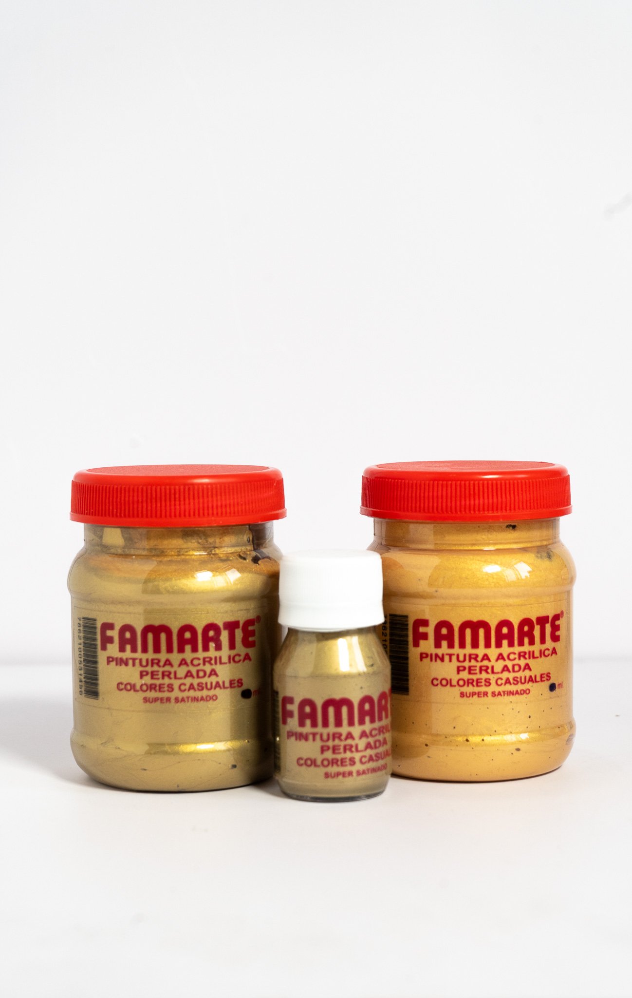 Las Pinturas Acrílicas FamArte de las gamas Perlada y Metalizada están formuladas con pigmentos de alta calidad que aportan un brillo único y duradero.